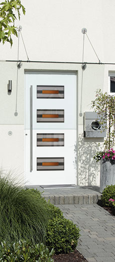 Individuelles Wohnen beginnt an der Haustür. Sie bildet den Übergang zwischen Innen und Außen, zwischen gegebenem Lebensraum und eigenen Wünschen und Vorstellungen. Angepasst oder bewusst Kontraste setzend; als Spiegel von Landschaft und Kultur oder als Ausdruck von Sehnsucht und Phantasie; mit dem Wunsch nach Intimität oder nach einladender Offenheit. Ebenso individuell wie die Bedürfnisse der Menschen sind auch unsere Haustürfüllungen aus dem Programm MODERN. Material und Oberflächenstruktur, Form und Farbe – das sind die Elemente für nahezu unerschöpfliche Gestaltungsmöglichkeiten.